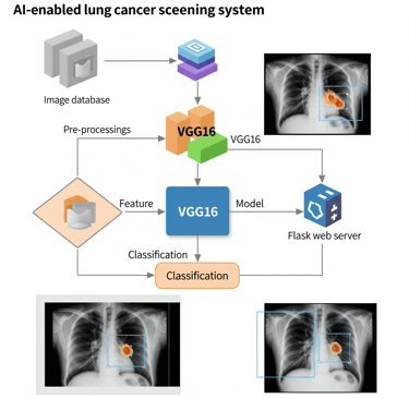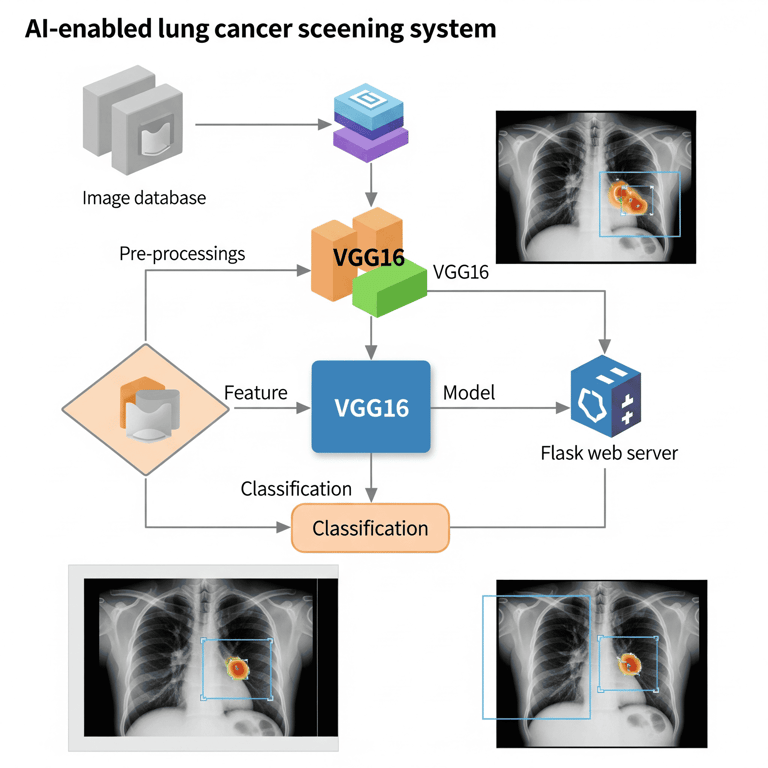 In this project, I built LungAI, an AI-powered lung cancer detection system that uses Deep Learning and image processing to classify chest X-ray images as normal or cancerous. This project combines a pre-trained VGG16 model with a custom-trained classifier to achieve accurate results. The system runs entirely on a local Flask web server, allowing users to easily upload X-ray images, receive instant predictions, and view motivational messages along with a clear model accuracy chart.