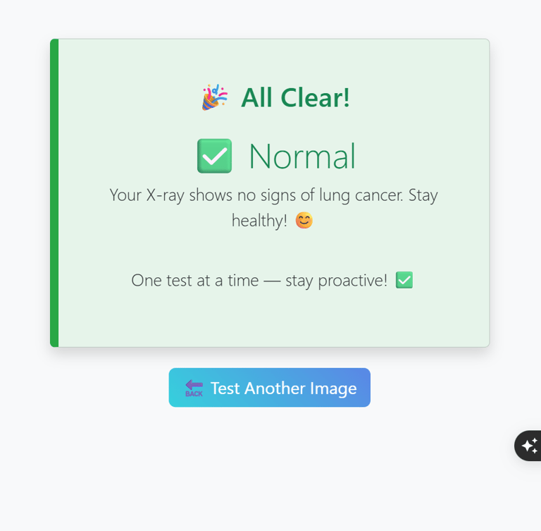 Built with Python, TensorFlow, Keras, OpenCV, Flask, HTML, CSS, and Bootstrap, LungAI is designed to be simple yet powerful — ideal for college projects, research, or demonstration purposes. The user interface is colorful, mobile-friendly, and includes dynamic messages to keep users positive, whether the prediction is normal or indicates a possible issue.